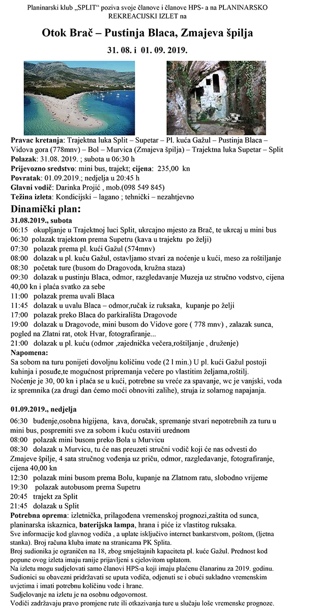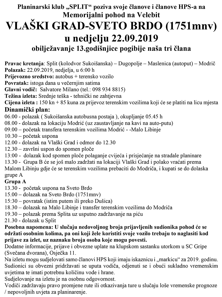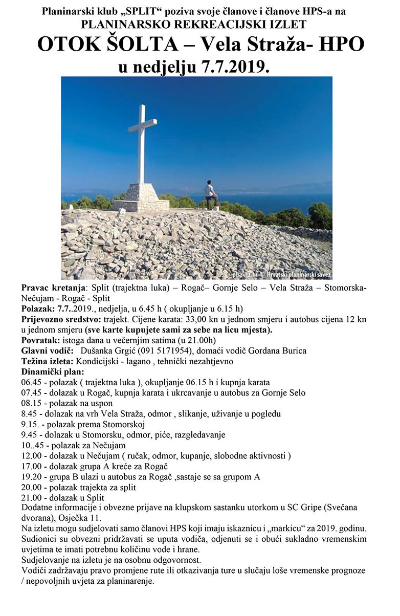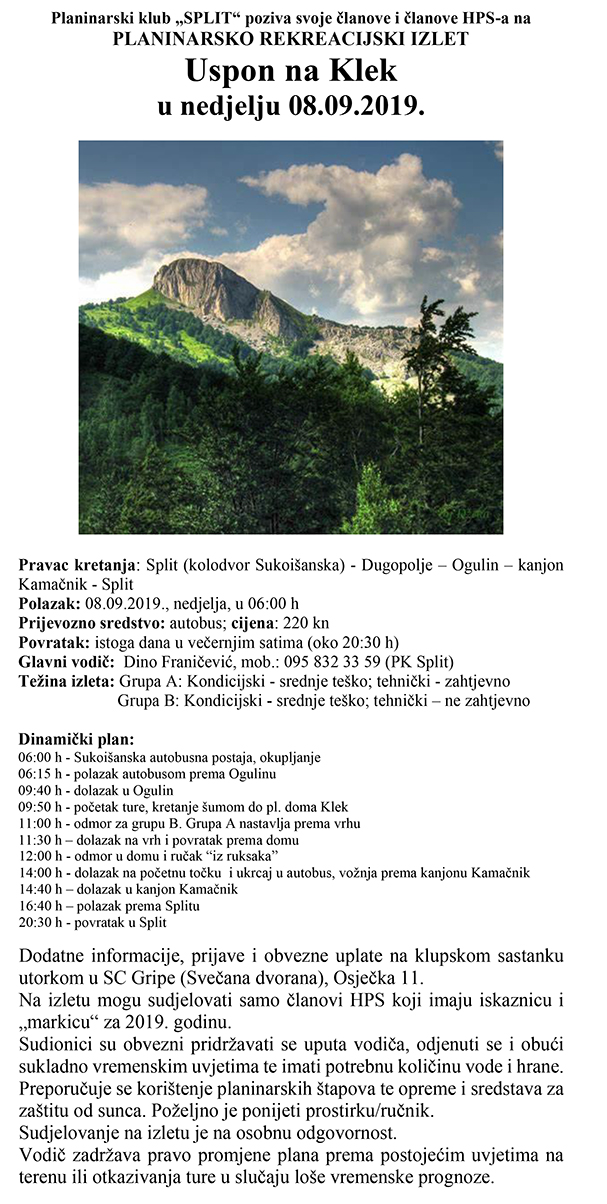 Planinarski klub „SPLIT“ poziva svoje članove i članove HPS-a na