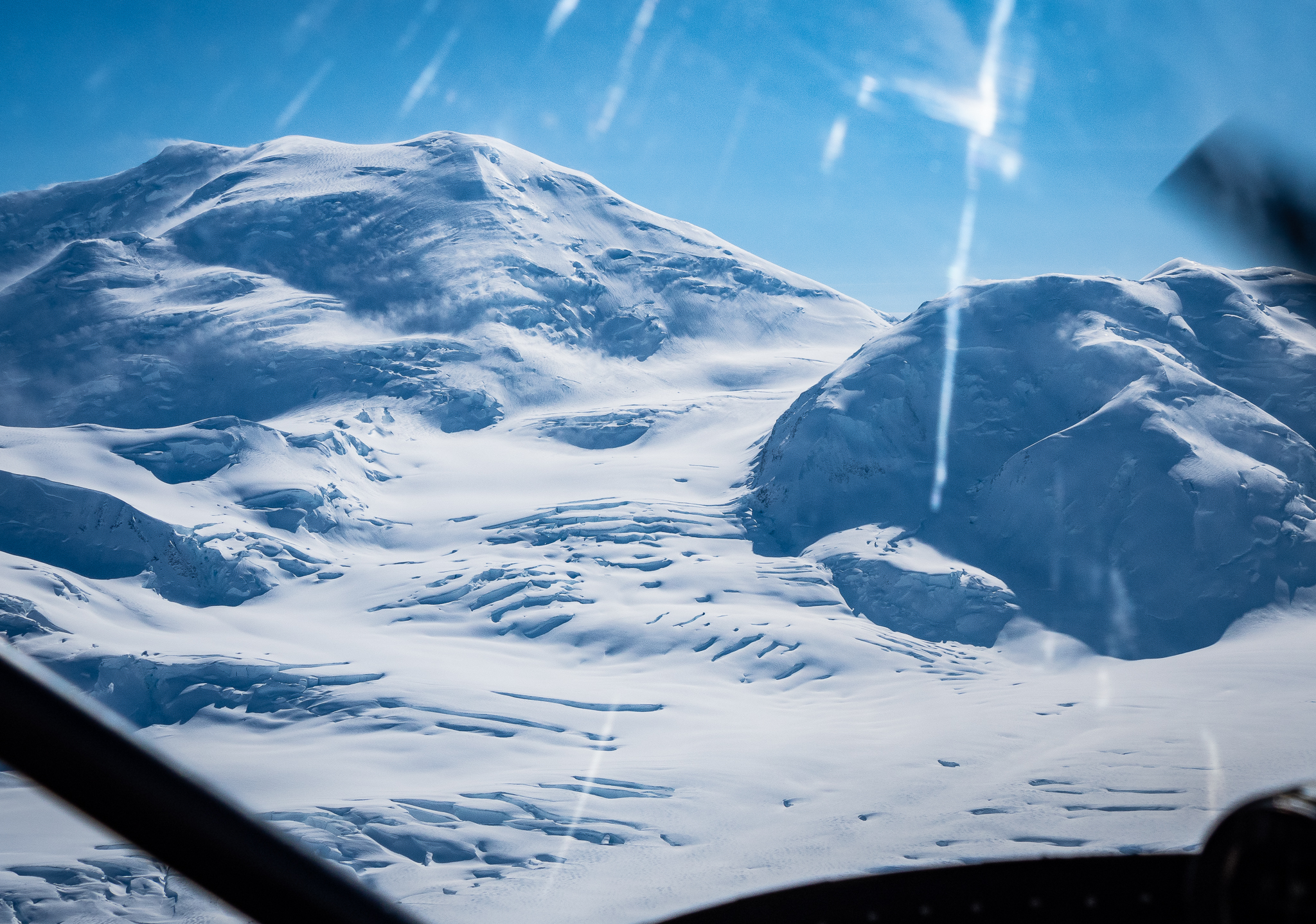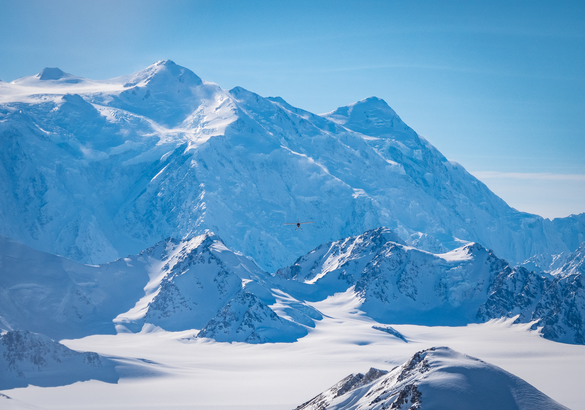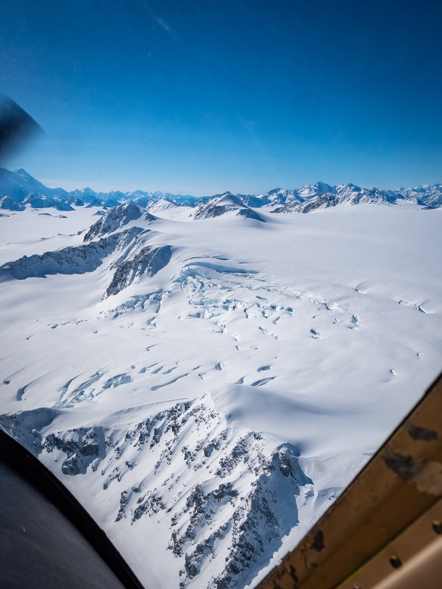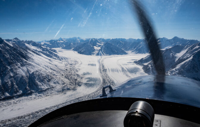 Zbog veličine aviona i našeg tereta, morali smo poletiti u dvije ture što će se na kraju naše ekspedicije i povratku pokazati problematičnim. Dobra vijest za naše planove za sljedeću godinu jest da imaju i drugi avion većih dimenzija koji ovom zgodom još nije bio spreman, pa ćemo sljedeći put moći svi stati u jedan let. No, vratimo se natrag na naš let koji traje 45 minuta u svakom smjeru. Nakon nekoliko minuta u zraku mozak se krene lagano opuštati jer očito avion može letjeti. Kad blaga neugoda krene nestajati, osjećaj sreće nastupa. Prvo iz razloga što su mjeseci priprema konačno stvarnost, vrijeme je idealno i sve se zaista događa. Drugo, pogledi na sve strane su nevjerojatni i meni osobno, nešto o čemu sam dugo, čak bi se usudio reći, sanjao. Na mom prvom letu u Kanadu, sjedio sam igrom slučaja uz desni prozor i pri letu preko Grenlanda, sunce je zalazilo, a beskonačne planine i led su bili glavna tema. Kluane je vrlo slične morfologije, samo su njegovi vrhovi viši i glomazniji.