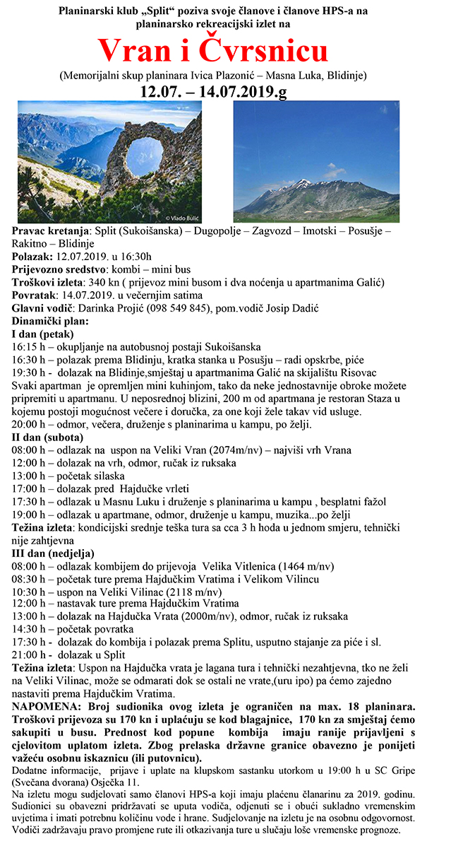 Izlet na Vran i Čvrsnicu